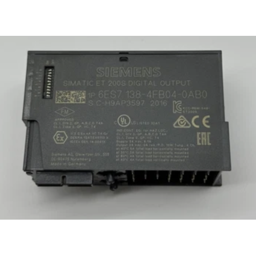 Siemens 6ES7138-4FB04-0AB0 is a fail-safe digital output (F-DO) module designed for safety-critical automation systems using the SIMATIC ET 200S distributed I/O platform. It provides multiple transistor outputs with integrated diagnostics and safety functions via PROFIsafe. This module is engineered for functional safety up to SIL 3 (IEC 61508) and Performance Level e (ISO 13849-1), making it suitable for emergency stop, interlock, and other safety logic tasks in industrial applications. It can be used with ET 200S stations on both PROFIBUS DP and PROFINET (with the appropriate interface modules such as IM151-3 HF).